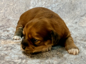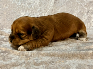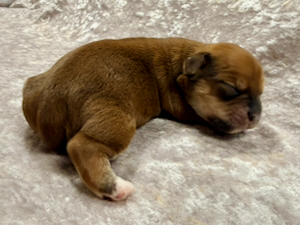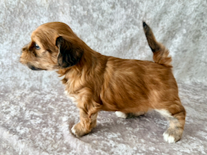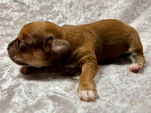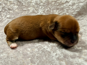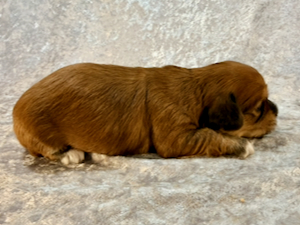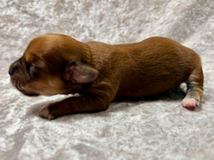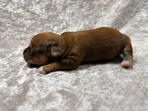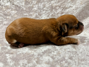 Nala er nu 4 1/2 uge gammel og vejer 1180 g. Hun er en meget yndig tæve med en smuk rød zobel farvet pels.