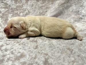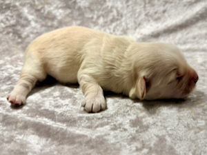 Nemo er nu 15 dage gammel og vejer 805 g. Han er en smuk cremefarvet dreng. Han har åbne begge sine øjne ,og møver sig hurtigt rundt i hvalpekassen.
