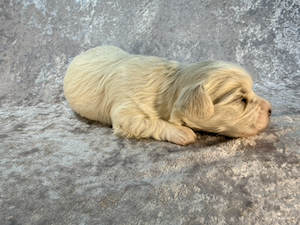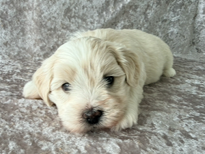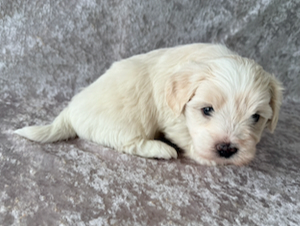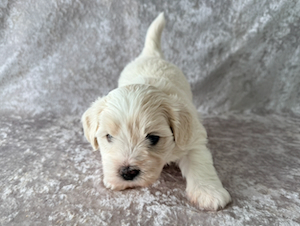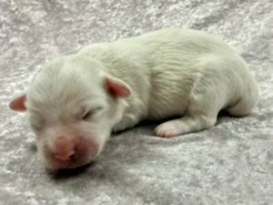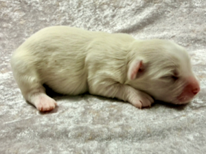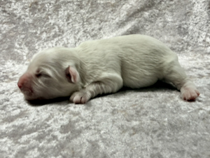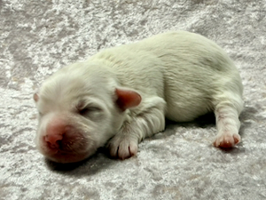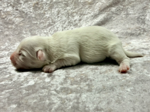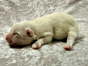 Nixon er nu 15 dage gammel og vejer 719 g. Han er en smuk hvid dreng. Han har ikke helt åbnet sine øjne endnu, men kan sagtens møve sig rundt i hvalpekassen.