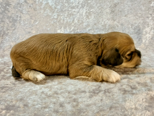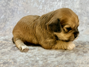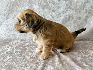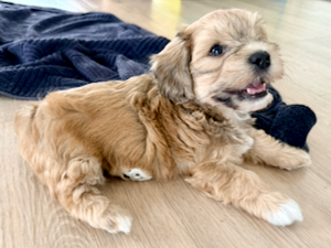 Nuggi er nu 6 uger uger gammel. Han er en meget smuk og legesyg dreng. Der er gang i ham men han er også en rigtig hyggetrold som godt kan lide at være i hænder. Han er en sjov hvalp, som ikke holder sig tilbage ved leg.