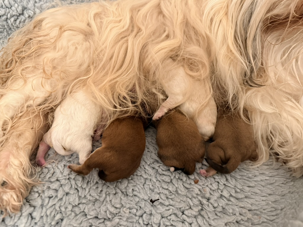 Viola fødte i dag 5 lækre hvalpe. Fødslen forløb så fint og hvalpene er helt som de skal være.